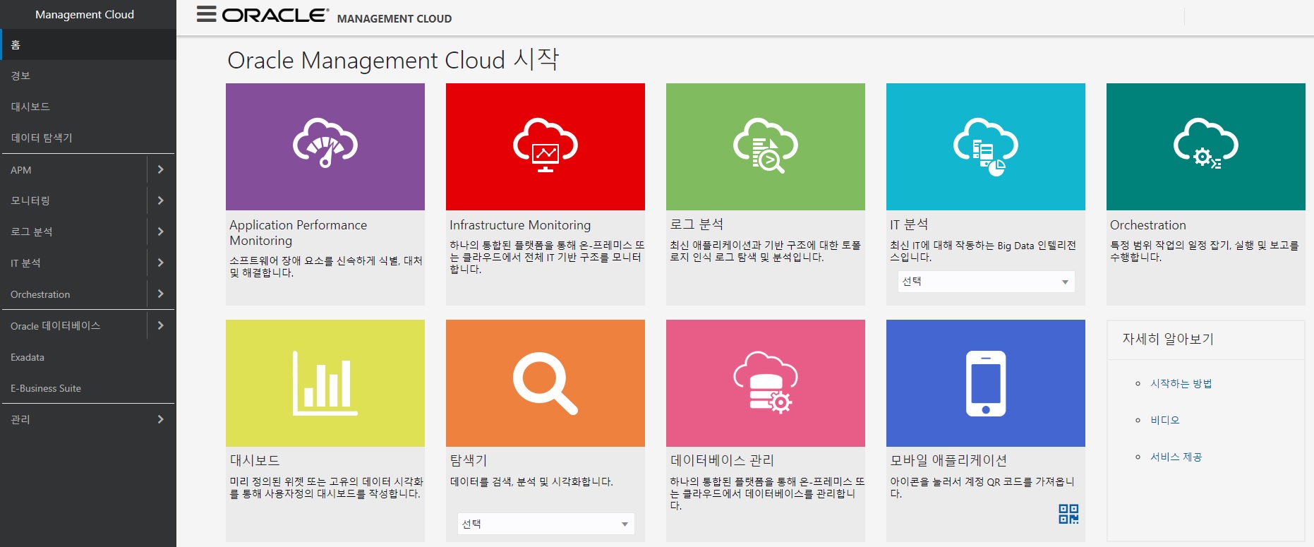 Oracle Management Cloud (OMC) 서비스는 시스템 및 어플리케이션 로그를 다양한 패턴으로 분석 및 시각화 하여 가독성을 높이고, 중요 데이터와 사용자 니즈에 맞춘 대시보드 커스터마이징 기능과 앱을 통한 다양한 알람 기능을 제공합니다.
